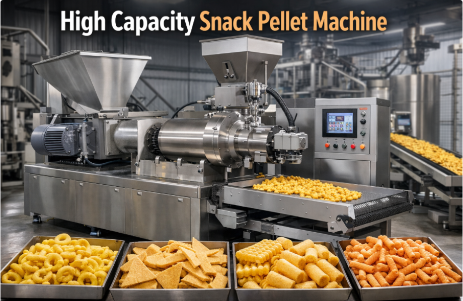 Buy high capacity snack pellet machine for fast and efficient production. Ideal for fryums, 2D & 3D pellets, and extruded snacks. Durable, energy-efficient & food-grade design.