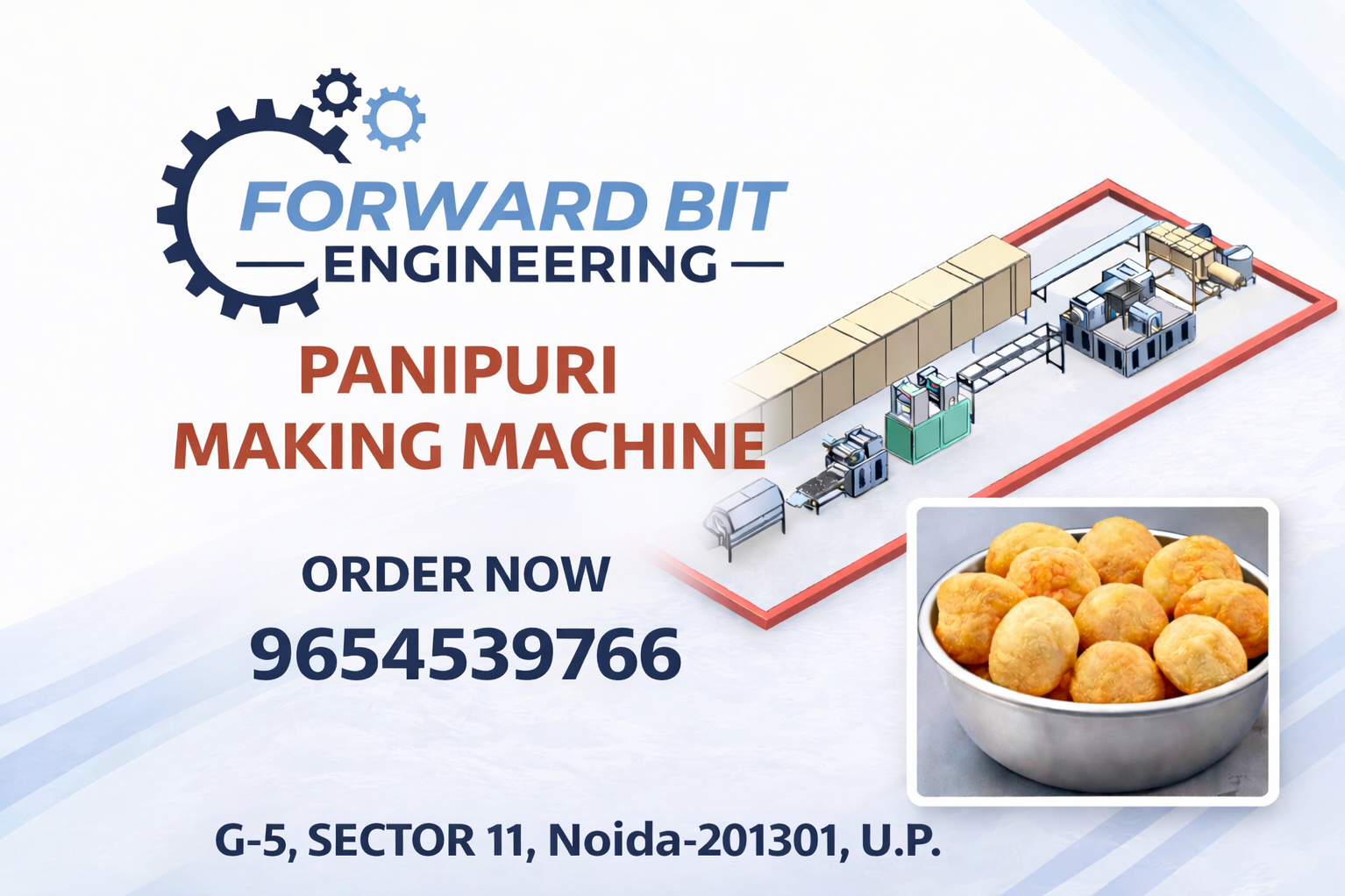 Forward Bit Engineering is a leading manufacturer and supplier of fully automatic Panipuri Making Machine in Ranchi. Our machine is specially designed for continuous production of uniform size golgappa / pani puri pellets with high speed and low labour cost. We provide panipuri machines in Raipur, Delhi, Noida, Mumbai, Indore, Nagpur, Hyderabad and all over India with installation support and training. The machine automatically sheets the dough, cuts perfect round puris and produces ready-to-fry golgappa pellets. After frying, the puri puffs perfectly round with minimum breakage. It is ideal for namkeen factories, street food suppliers and export snack manufacturers.