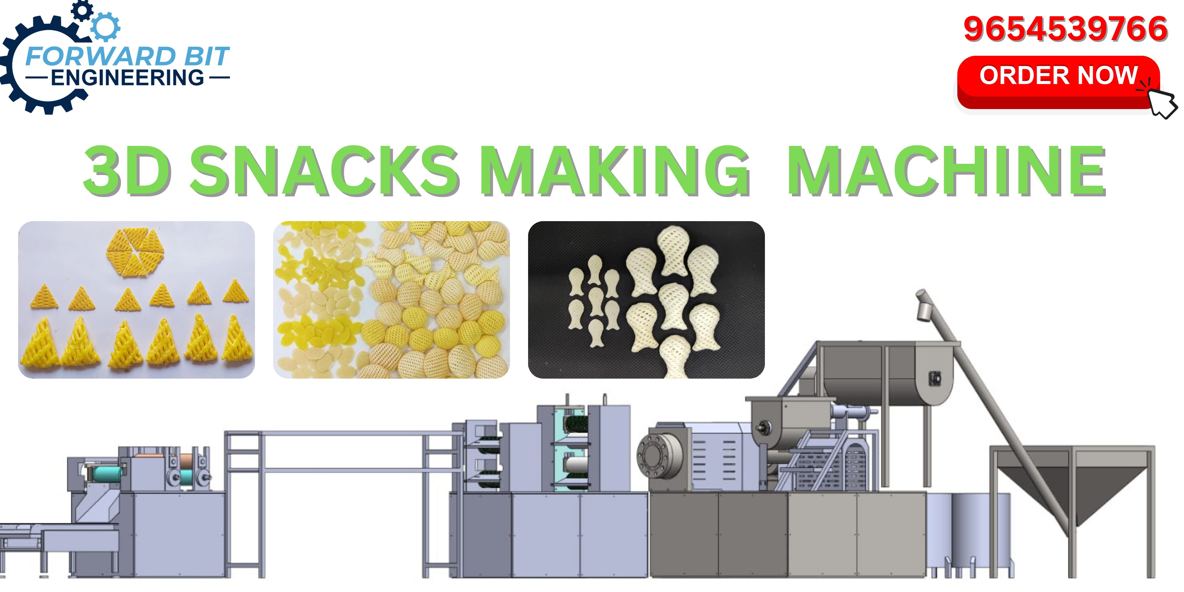 FORWARD BIT ENGINEERING This 3D Snacks pellet making machine is developed on SINGLE EXTRUDER TECHNOLOGY, it contains extrusion system, transmission system, feeding material system, Roller Cutting system .